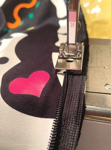 - Unelastischer Vlies-Rest zum Verstärken der Naht beim Reissverschluss der Innentasche