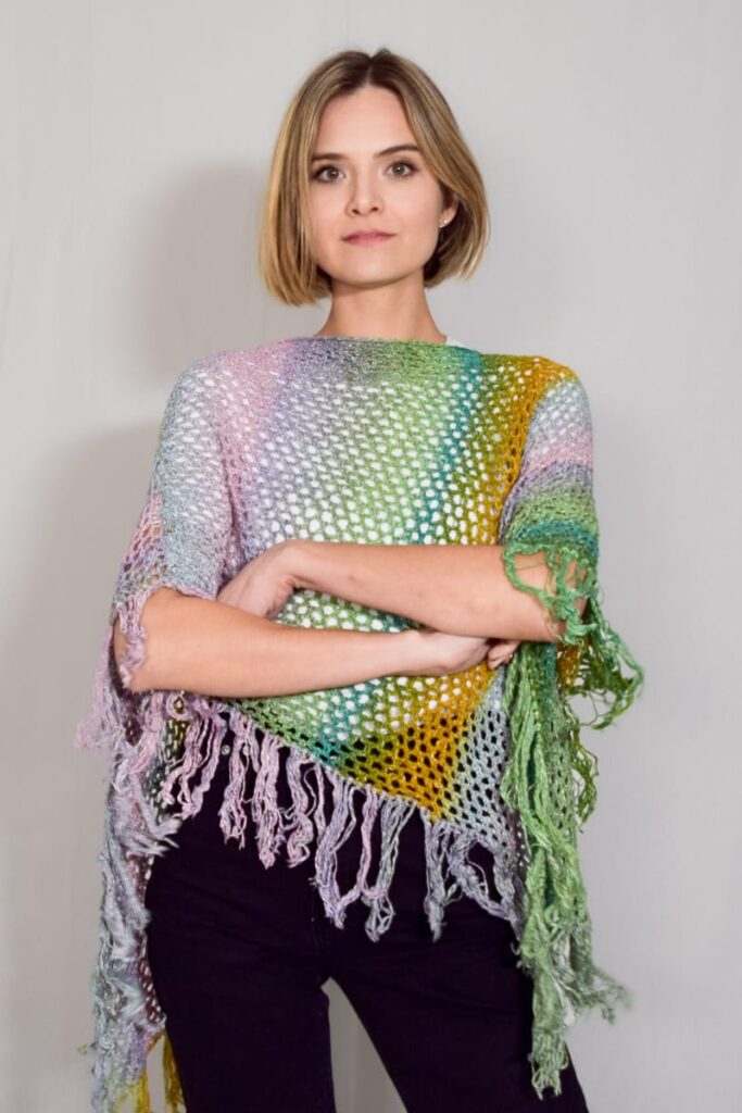 Grösse S/M = 4 Knäuel. Grösse L/XL = 5 Knäuel. Bei langen oder dicht gelegenen Fransen 1 Knäuel mehr nehmen.