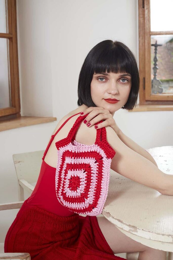 These little bags are perfect for putting little projects in. You can use them very easily as a project bag and the handle is large enough to slip it over your wrist. It looks like a sweet little pastry.