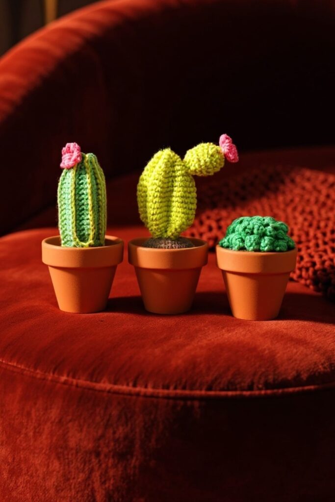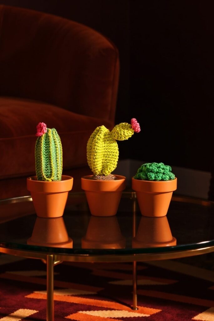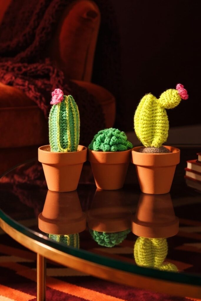 Was für eine lustige Art, Ihrem Raum etwas Farbe zu verleihen! Diese trendigen Kakteen sind eine grossartige Ergänzung für Zuhause oder Büro sowie ein tolles Geschenk. Dieses Paket enthält hochwertiges Garn aus 100% Baumwolle und alle Kurzwaren, ausser der Häkelnadel, welche du brauchst. Die Kakteen sind inklusive Topf zwischen 7 und 13 cm hoch und werden mit einer 2.5 mm Häkelnadel gehäkelt.