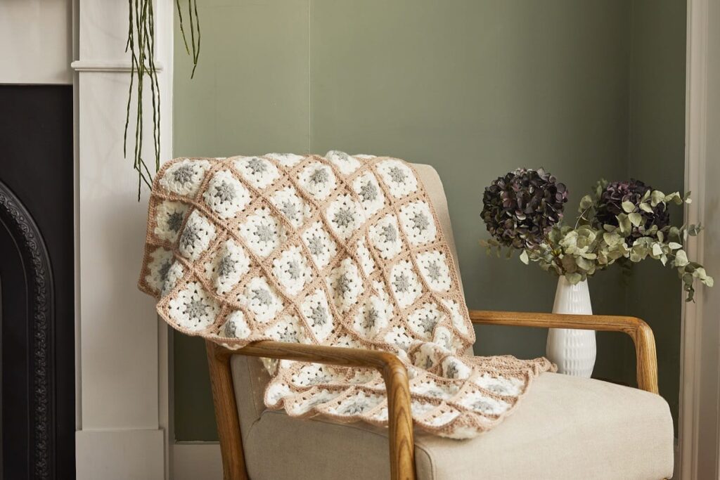 Diese Vintage-inspirierte Oma-Quadrat-Decke ist ein klassisches Geschenk, das sich wie eine gehäkelte Umarmung anfühlt. Schleife und Geschenkanhänger inklusive. Box als Geschenkverpackung wiederverwenden. Verschenken Sie Gemütlichkeit mit diesem Oma-Quadrat-Deckenset. Diese Decke aus drei neutralen Garnfarben passt perfekt in jedes Zuhause im zeitgenössischen Stil. Es verleiht jedem Sofa oder Bett Wärme und Struktur. Entwickelt als Teil unserer Gift of Stitch-Reihe. Diese bequeme und schicke Decke ist ein wunderbares Geschenk für einen geliebten Menschen zum Kuscheln. Alternativ können Sie das Kit selbst verschenken, damit andere die entspannenden Vorteile des Handwerks entdecken können.