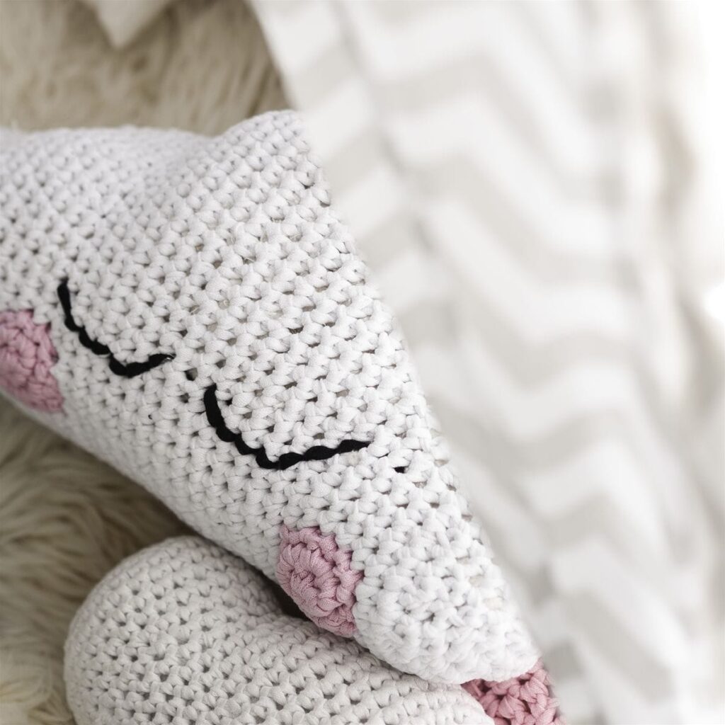 Beim Anblick dieser niedlichen und flauschigen weißen Häkel-Traumwolke werden Sie und Ihr Kind in den Schlaf gleiten. Es ist ideal als dekoratives Kissen für Ihr Schlafzimmer oder für das Kinderzimmer. Dieses Häkelset wurde von der Häkeldesignerin Zooeyzo entworfen.