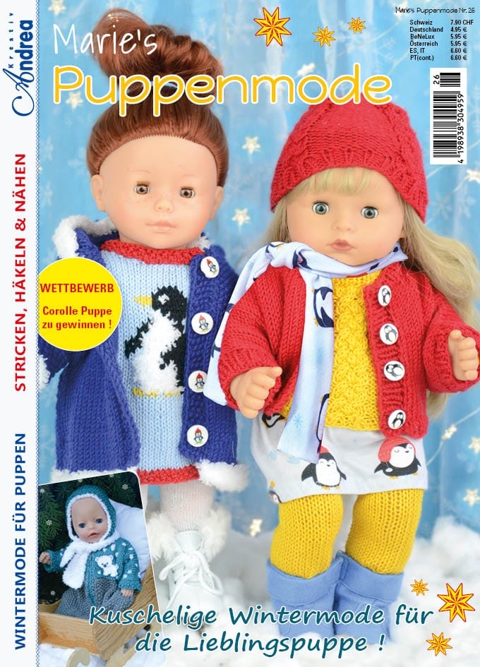 Strickanleitungen für Puppengrösse: 30-35 cm, 36-40 cm, 41-45 cm und 46-50 cm