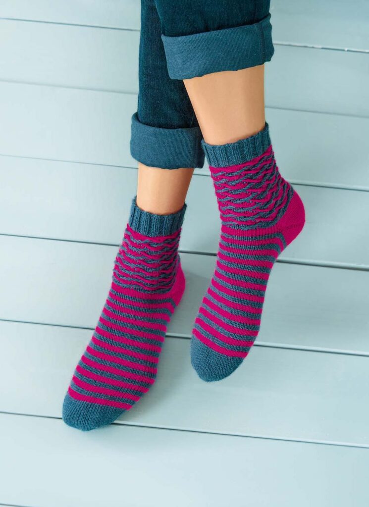 Strick-Anleitungen für modische Socken, Stulpen, Mützen, Loops und Dreieckstücher. Auch Herrensocken sind mitdabei.