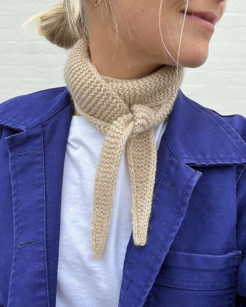 Der Sophie Scarf wird in Reihen in einem Stück kraus rechts mit I-Cord Rändern von Spitze zu Spitze gearbeitet. Die kleine Größe des Sophie Scarf kann einmal um den Hals gelegt werden, die große Größe zwei Mal.