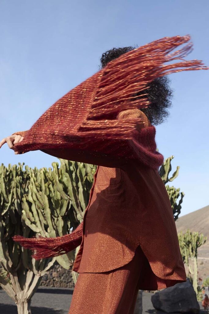 Fifty shades of red and brown intertwine in this exquisite scarf, allowing them to blend and play together, akin to pigments on an artist’s palette. Witness the harmonious fusion of colors, each hue contributing to a masterpiece to draped around your neck.