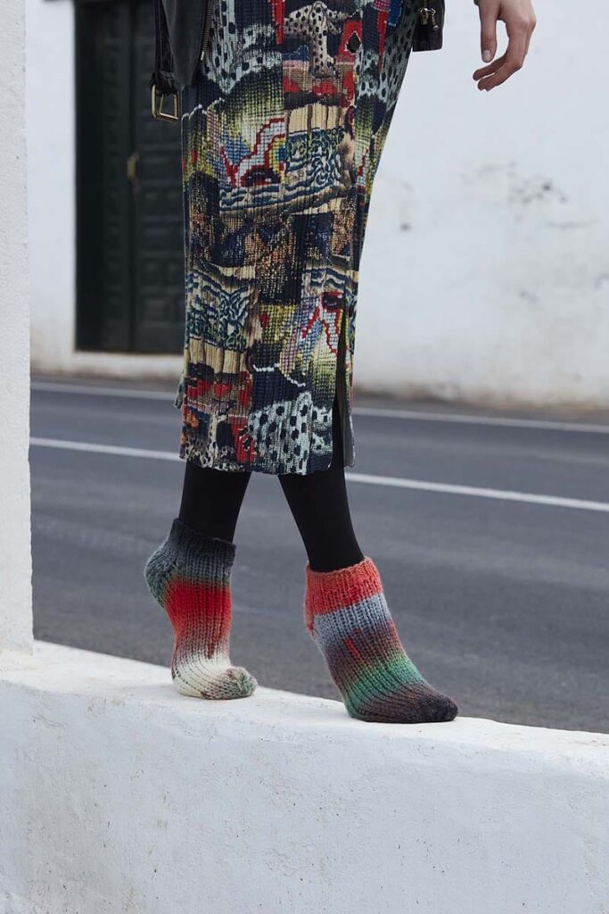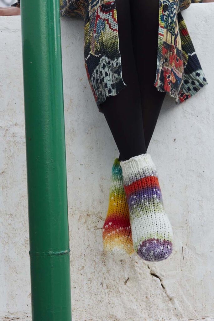 These socks not only keep your feet cozy but also add a kaleidoscopic touch to your ensemble, making every step a colorful journey. Complete the outfit with the matching mittens, PRISMATIC SHAKERS, for a coordinated burst of chromatic warmth that moves with you through all the shades of style.