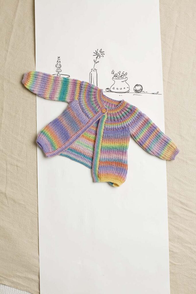Strickanleitung in den Sprachen DE, FR, NL, EN.