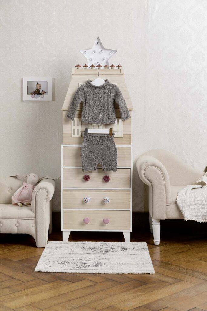 Strickanleitung in den Sprachen DE, FR, NL, EN.