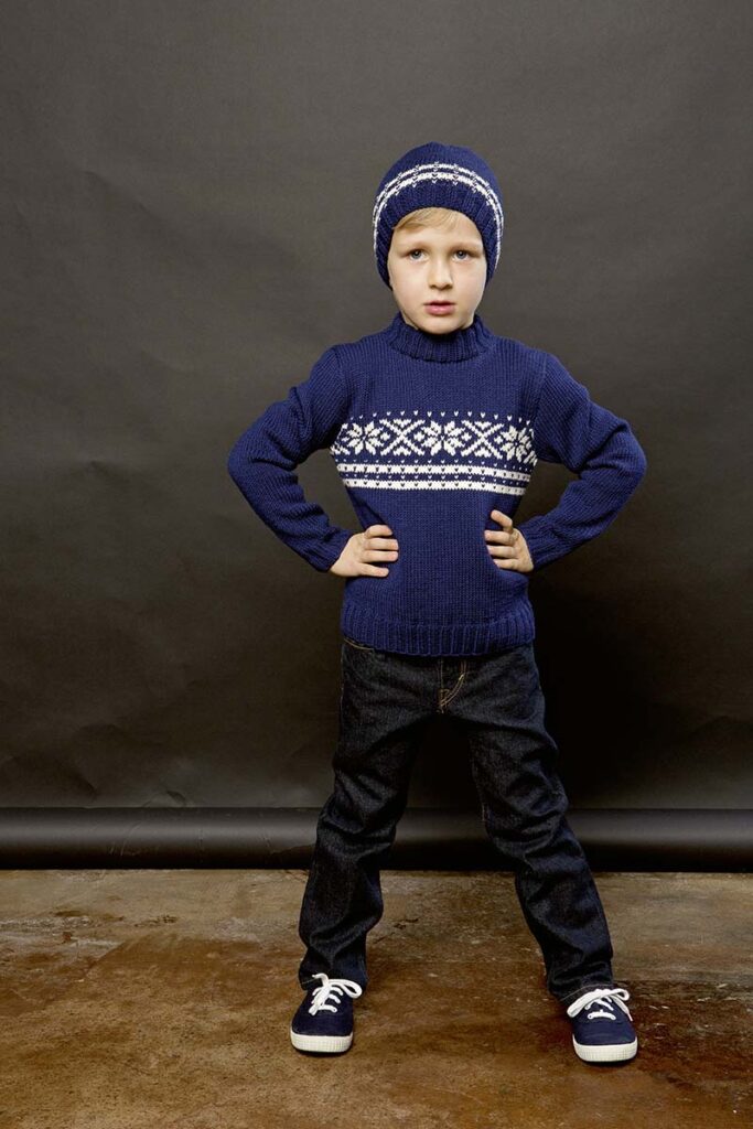 Strickanleitung in den Sprachen DE, FR, NL, EN.
