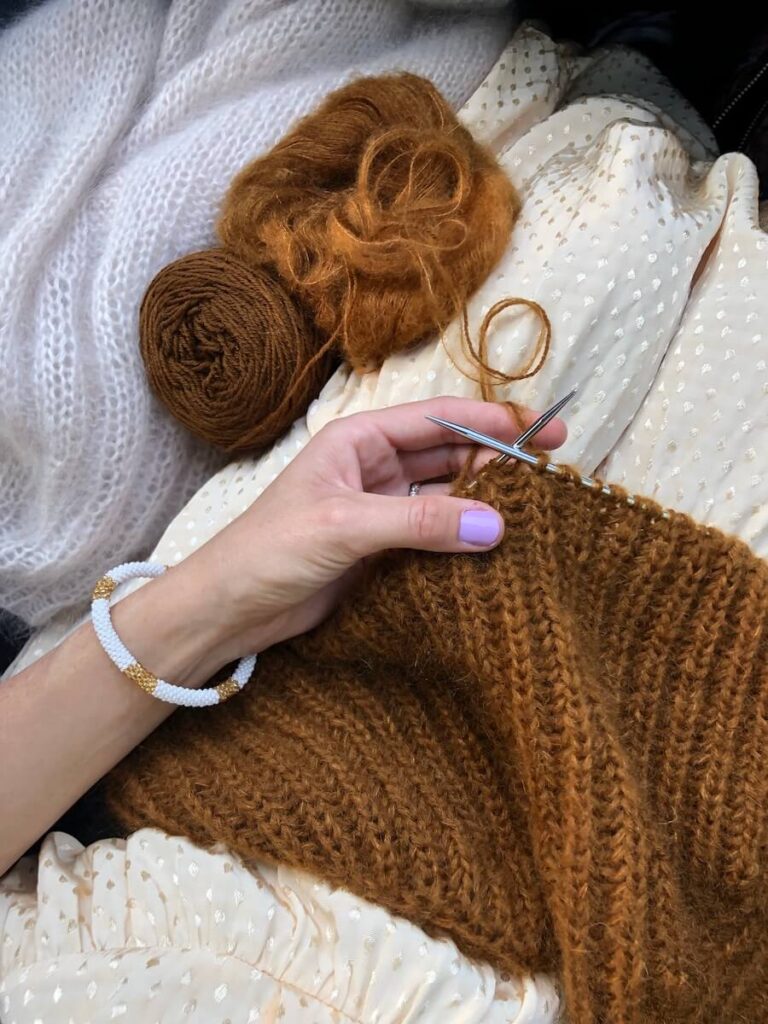 Die September Jacke wird von oben nach unten im Patentmuster mit 1 Faden Sunday und 2 Fäden Tynn Silk Mohair gestrickt. Zuerst wird die Rückseite gestrickt, danach die rechte, dann die linke Schulter. Diese 3 Teile werden dann für den Rumpf auf einer Rundstricknadel gesammelt, der in Reihen hin und zurück im Patentmuster gestrickt wird. Die Ärmel werden aus den aufgenommenen Maschen am Armausschnitt gestrickt. Zuletzt werden noch Blenden entlang der vorderen Jackenkanten als Knopfleisten gestrickt, wie auch ein Bündchen im Rippenmuster entlang des Halsausschnittes. Die Taschen werden ebenfalls im Patentmuster gestrickt und zuletzt auf der Jacke befestigt. Die Jacke wird mit Druckknöpfen geschlossen.