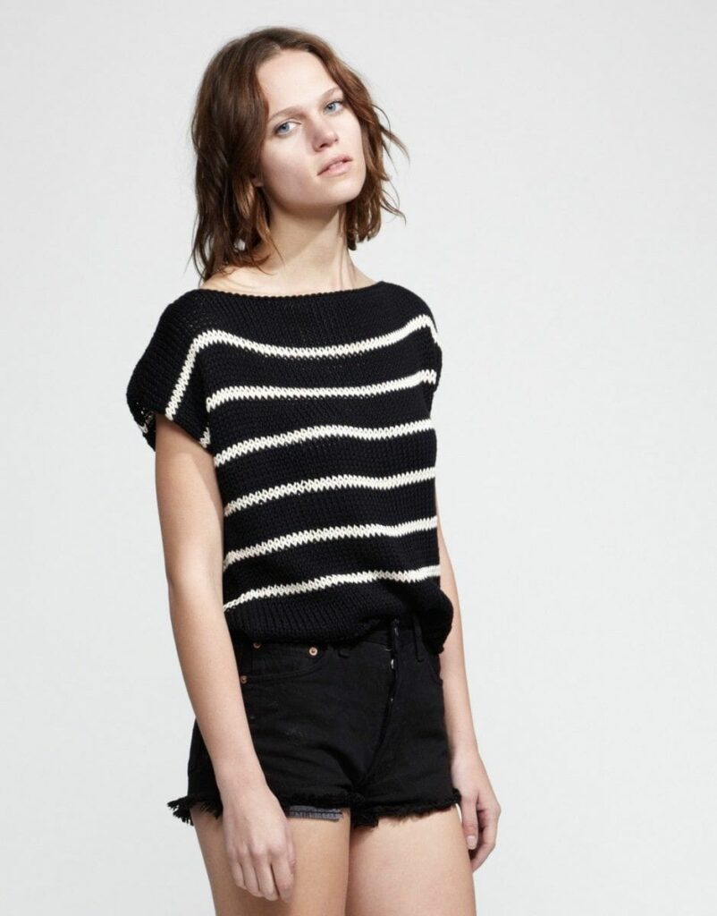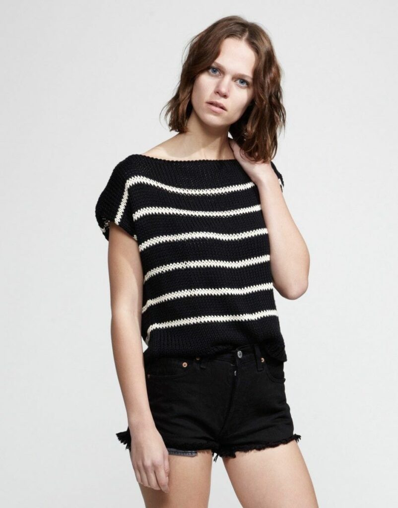 Die «Marinière» ist das ultimative Kult-Top. Wool And The Gang haben die traditionellen Farben Blau und Weiß ersetzt, um es femininer und weniger klischeehaft zu machen. Mit der Oversize Form ist es superschick, halb T-Shirt, halb Pullover.