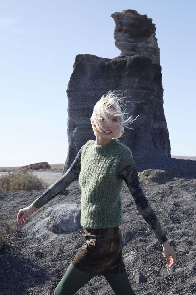 This slipover, aptly named EVERGREEN TONIC, serves as a wellspring of enduring inspiration. Each row, while distinct also slots seamlessly into the fabric of the ones that came before. With every new stitch, it captures the essence of freshness and rejuvenation anew.