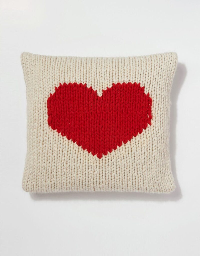 Fülle dein Zuhause mit Liebe dank dieser exklusiven kostenlosen Anleitung! Das Kissen wird aus zwei Farben Crazy Sexy Wool mit 12 mm Stricknadeln gefertig und ist das perfekte Projekt für den Valentinstag! Es wird aus glatt rechten Maschen gestrickt und dann im einfachen Maschenstich bestickt, perfekt also für alle, ob Anfänger oder Profi.