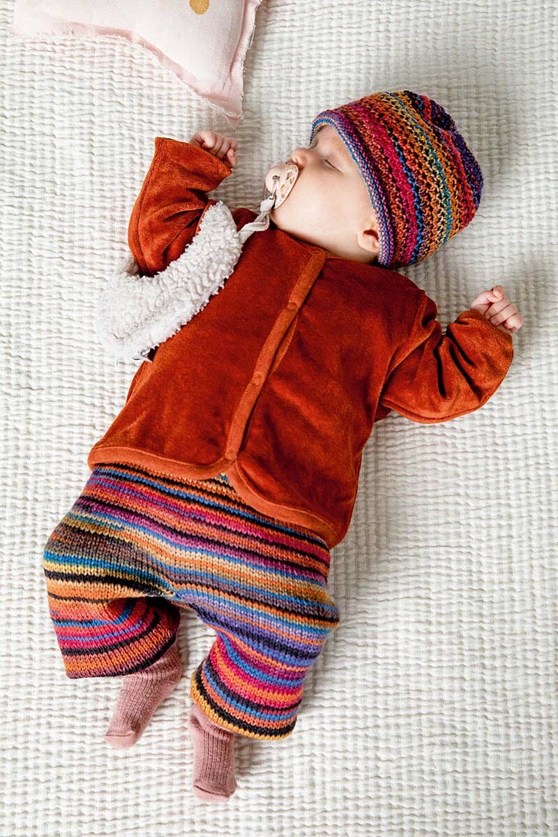 Du verfügst schon über ausreichend Erfahrung beim Stricken? Perfekt. Wieso dann nicht als Nächstes einmal den Nachwuchs beglücken? Eine süsse Babyjacke ist der Hit für alle, die etwas für die ganz Kleinen suchen. Das schicke Jäckchen im Regenbogen-Look kannst du problemlos mit unseren Rundstricknadeln anfertigen. Zusätzlich benötigst du sieben Knöpfe, die du nach dem Stricken einfach an das Kleidungsstück annähst. Beachte die Anweisungen der Anleitung oder lass dich von deinem eigenen Bauchgefühl leiten.