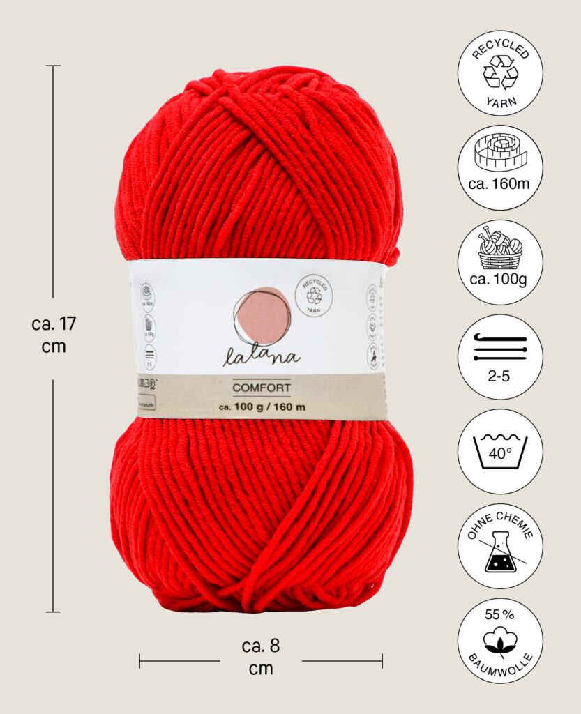 lalana Comfort ist durch seinen hohen Baumwollanteil sehr weich auf der Haut und kratzt nicht. Es ist perfekt, ob gestrickt oder gehäkelt, für alle Projekte im Bekleidungsbereich bestens geeignet.