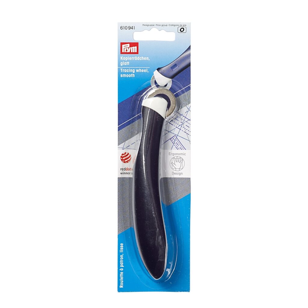 Wenn Schnittmusterlinien auf Stoff oder Papier übertragen werden sollen, sind die Kopierrädchen aus der Serie prym.ergonomics ein nützliches Nähzubehör. Während das glatte Kopierrad eine durchgehende Linie zeichnet, bringt das gezahnte Kopierrad von Prym gepunktete Linien auf den Stoff oder das Schnittmusterpapier. Die Rädchen zeichnen sich durch einen ruhigen leichten Lauf aus und lassen sich perfekt auf jeder Linie führen. Auch Markierungen in Schnittteilen, wie z.B. Abnäher oder Taschenposition, können mit Hilfe der Kopierrädchen und dem Schneider-Kopierpapier von Prym einfach übertragen werden.