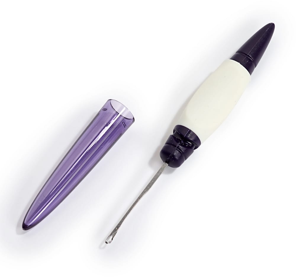 Diese feine Fangnadel aus der Serie prym.ergonomics beeindruckt durch ihre Vielseitigkeit, denn sie lässt sich ebenso zum Aufnehmen und Reparieren von Maschen in Wirkwaren als auch zum Faden einziehen und zur Fadenführung in Overlockmaschinen einsetzen. Eine Laufmasche in der Nylonstrumpfhose oder in einer Strickware? Die saubere Sicherung des Fadens bei Overlocknähten? Kein Problem für diese Fangnadel, die zudem durch ihr ergonomisches Design wie z. B. die rutschhemmenden Griffmulden ein leichtes, schnelles und ermüdungsfreies Arbeiten ermöglicht. Die Fangnadel wird inklusive Schutzkappe geliefert, die nach Umstecken auch als verlängerter Griff dient. Das lästige Suchen nach der Fangnadel während der Handarbeit entfällt ebenfalls, denn sie lässt sich mit Hilfe eines Bandes umhängen und ist damit immer zur Hand.